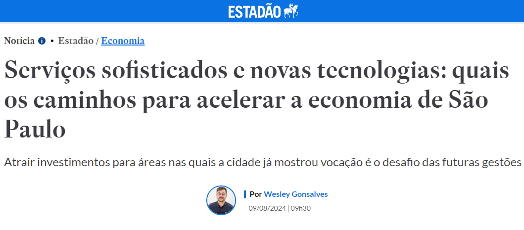 Segundo ele, é necessário trazer à mesa o debate sobre quais setores guiarão a economia paulistana nas próximas décadas, o que o especialista vê como a “vocação” da cidade. “São Paulo tem vocação para muitos negócios, para a área de serviços, por exemplo. Muitas empresas (brasileiras e multinacionais) têm suas sedes aqui, nós já temos uma estrutura de serviços montada em torno disso.”